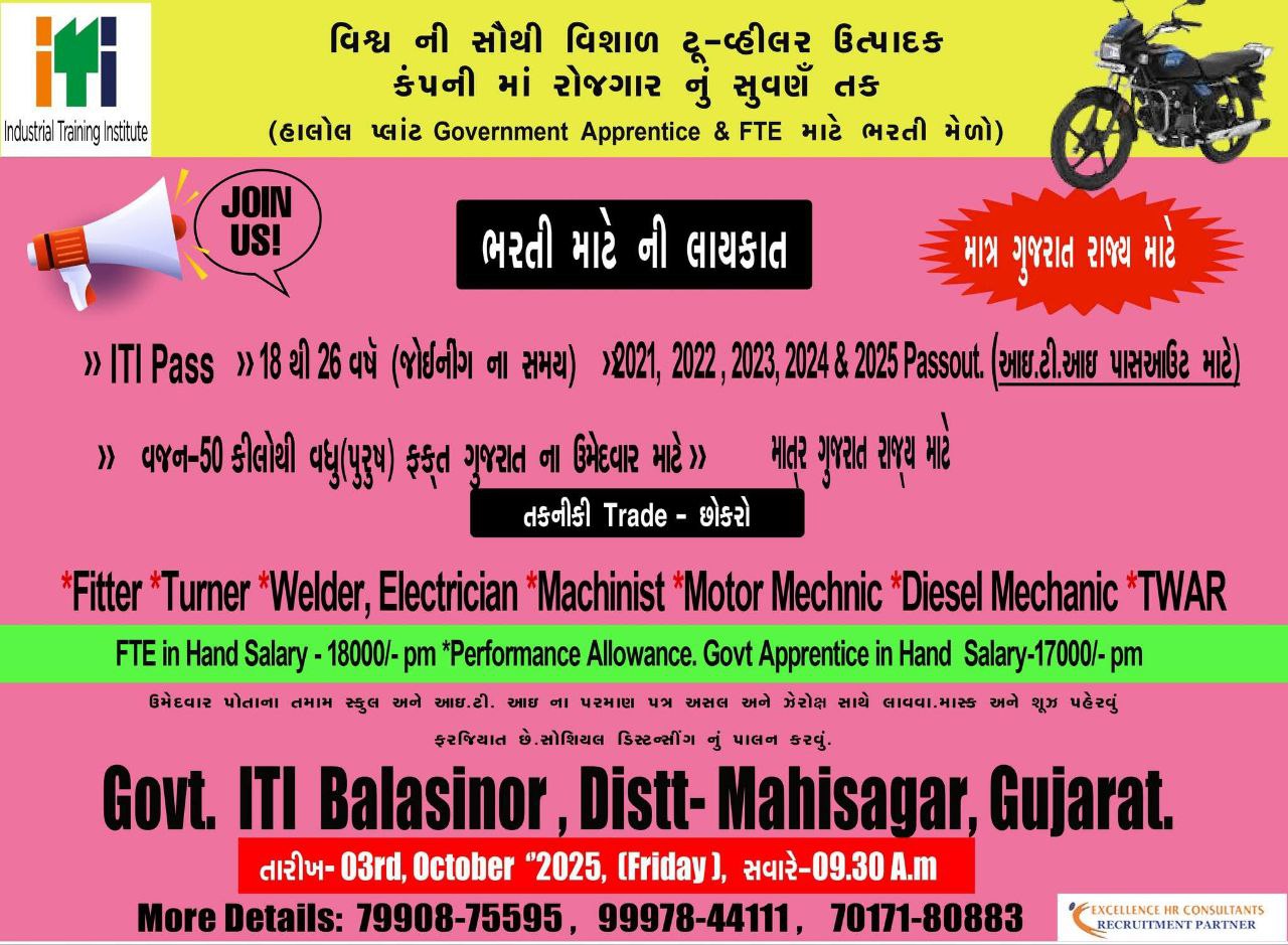 Campus Venue: Govt ITI Balasinor, Dist – Mahisagar, Gujarat
