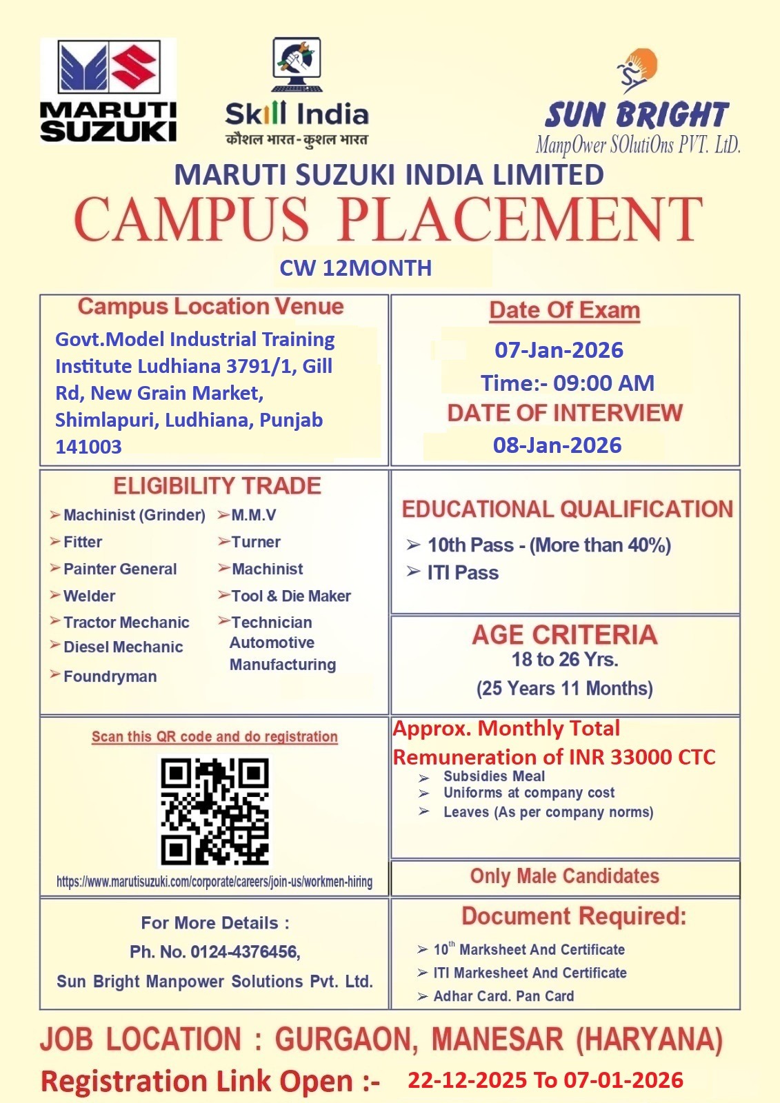 Maruti Suzuki CW Campus Placement 2026 | Maruti Suzuki ITI Job | ITI Campus