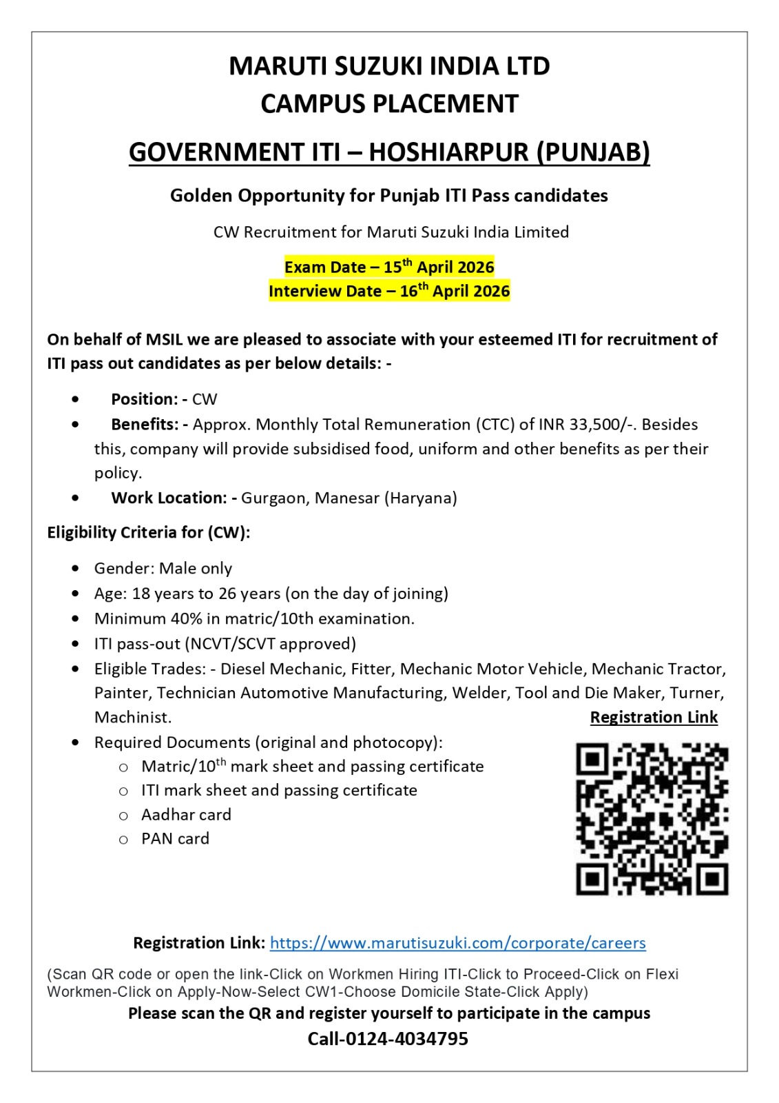 Maruti Suzuki CW Recruitment 2026: Eligible Criteria