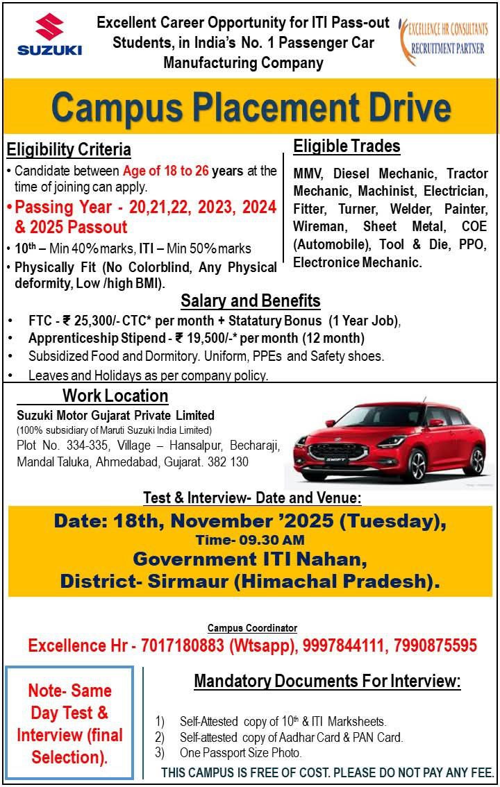 Suzuki Motor Recruitment 2025| ITI Jobs Campus Placement
