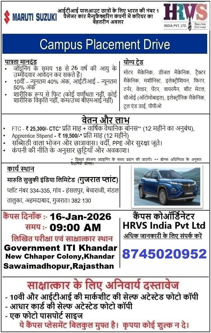Suzuki Motor Recruitment 2026| ITI Jobs Campus Placement