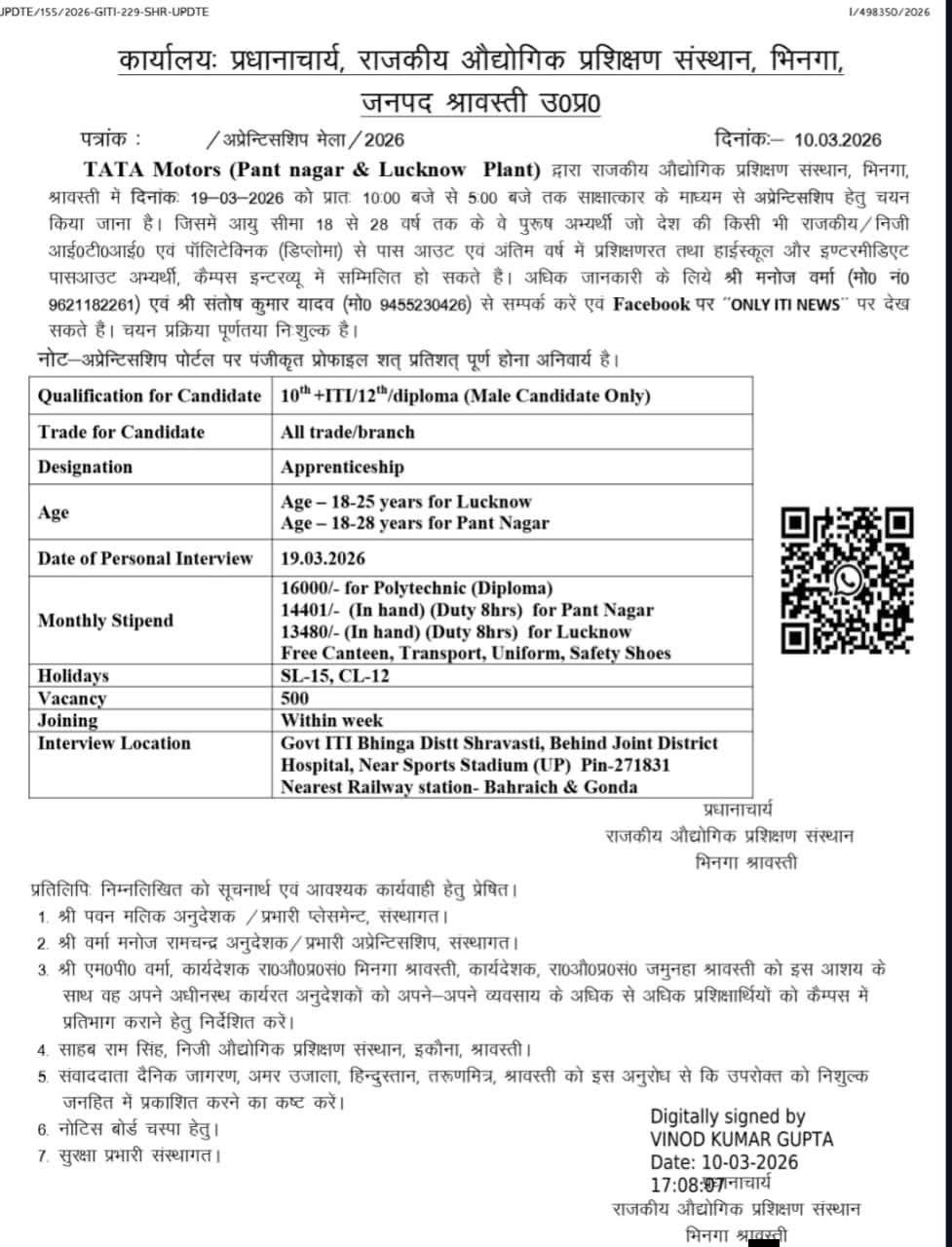TATA Motors Recruitment 2026 : Golden opportunity for job in Tata Motors Pvt Ltd with for ITI pass students. Tata Motors pantnagar uttarakhand has given notification for Campus Placement, in which all ITI pass youth can participate, selected candidates will get 14,000/- Per Month Salary will be given by Tata Motors. Read Full Post for More Details.